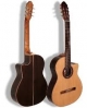 Guitarra cutaway (con corte) Media Caja. Tapa de pino abeto. Aros y fondo caoba / nogal laminado.Mástil de cedro. Diapasón de nogal. Clavijero lira dorado. Lustre natural. Doble filete negro.